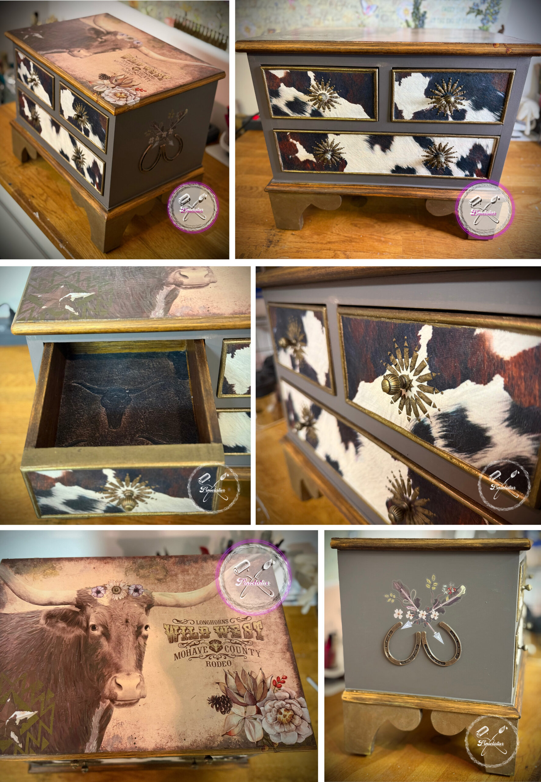 Ein kleines Schmuck-Kästchen im Western-Stil. Mit vielen liebevollen, thematisch passenden Details versehen.