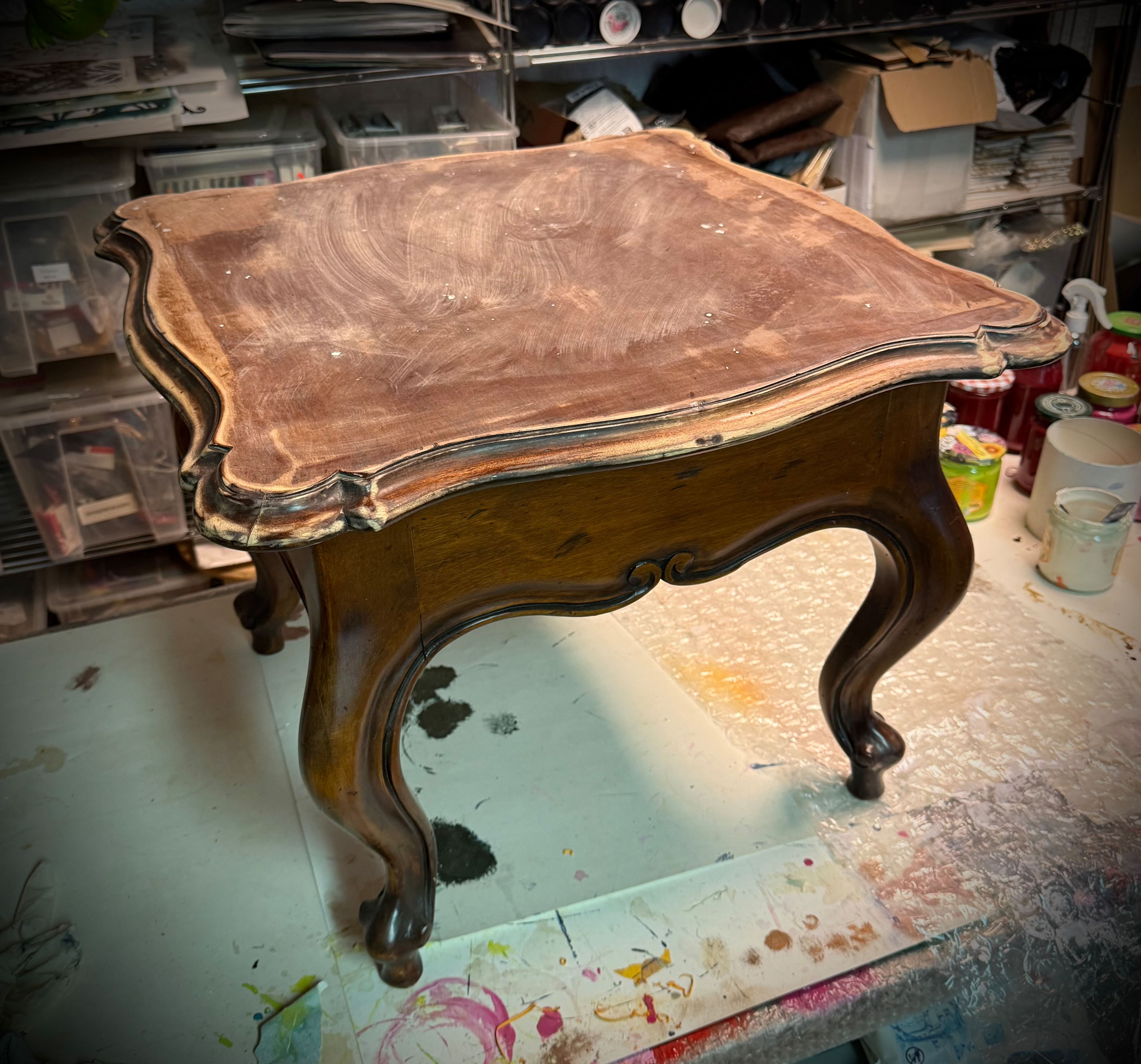 Als ich dieses lustige Tischlein gesehen habe, hatte sofort ein Bild vor Augen, was daraus werden soll.