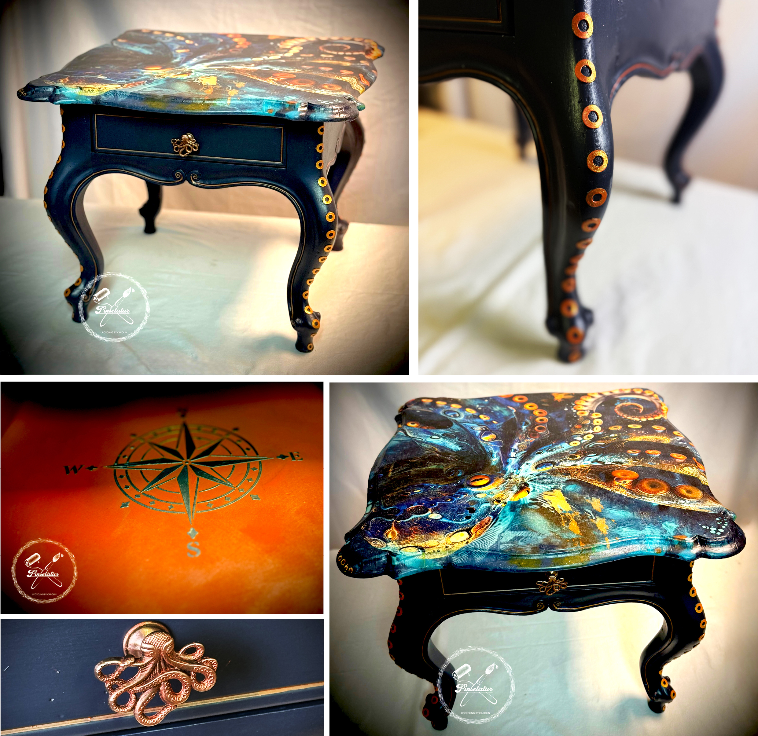 Die Tischbeine erinnern in ihrer Form an Tentakeln, das musste ich einfach aufgreifen und ein Kraken-Tischlein daraus machen.
